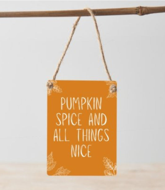 “Pumpkin Spice and all things nice” Mini Metal Sign -9cm