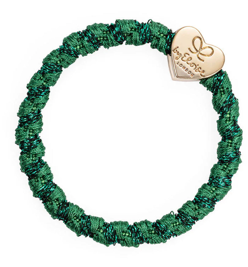 Gold Heart on a luxurious woven silk thread elastic hair band.