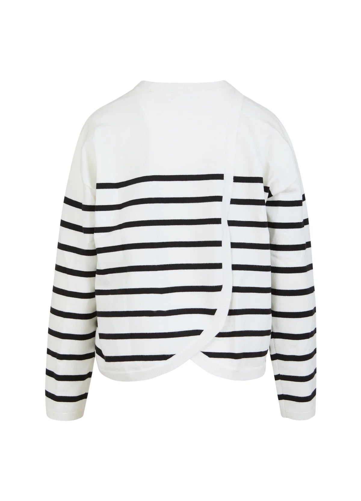 This black and white striped sweater adds a classic touch to your wardrobe. Its feminine open back makes it perfect for both everyday wear and casual occasions.