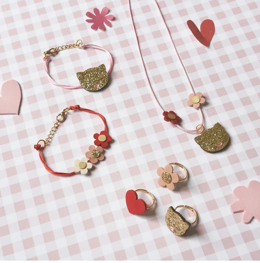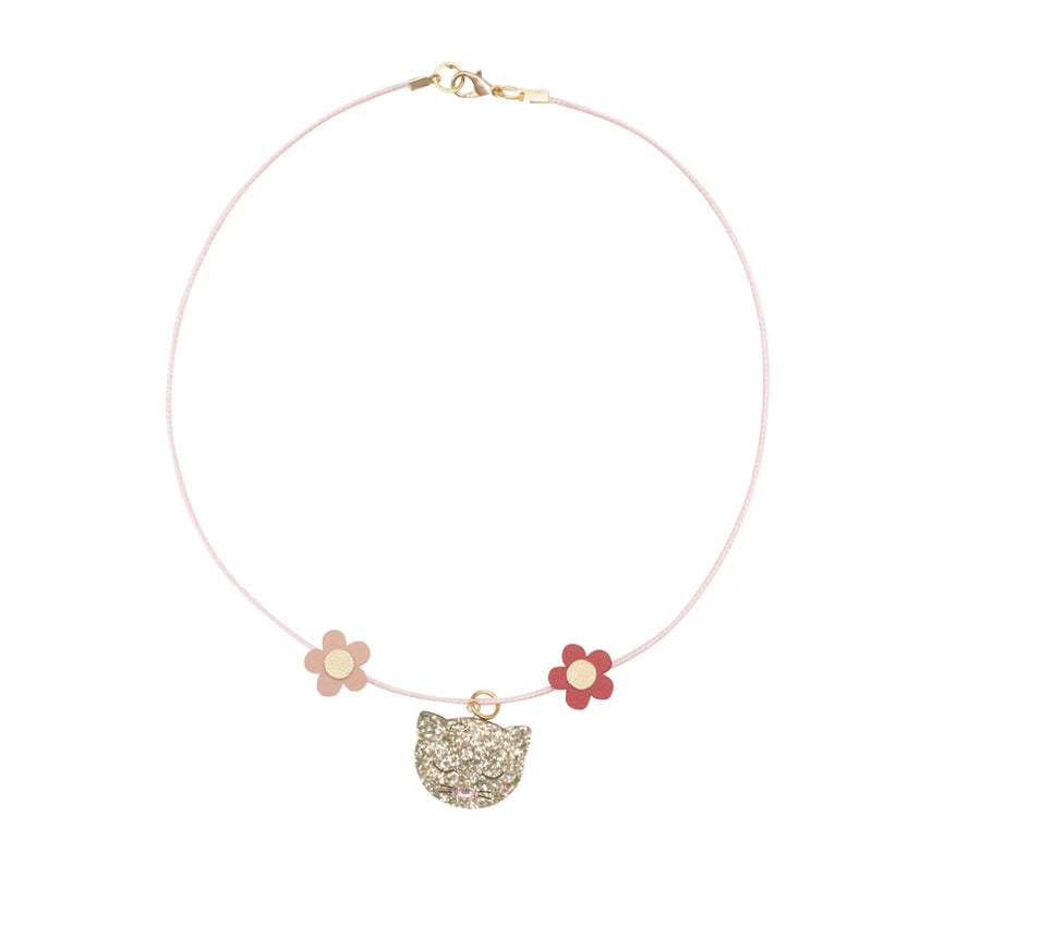 This necklace is puuur-fect in every way! Featuring our glittery gold Clara cat and sweet PU flowers set on a pretty pink cord with a lobster clasp fastening and extender chain to ensure the perfect fit.