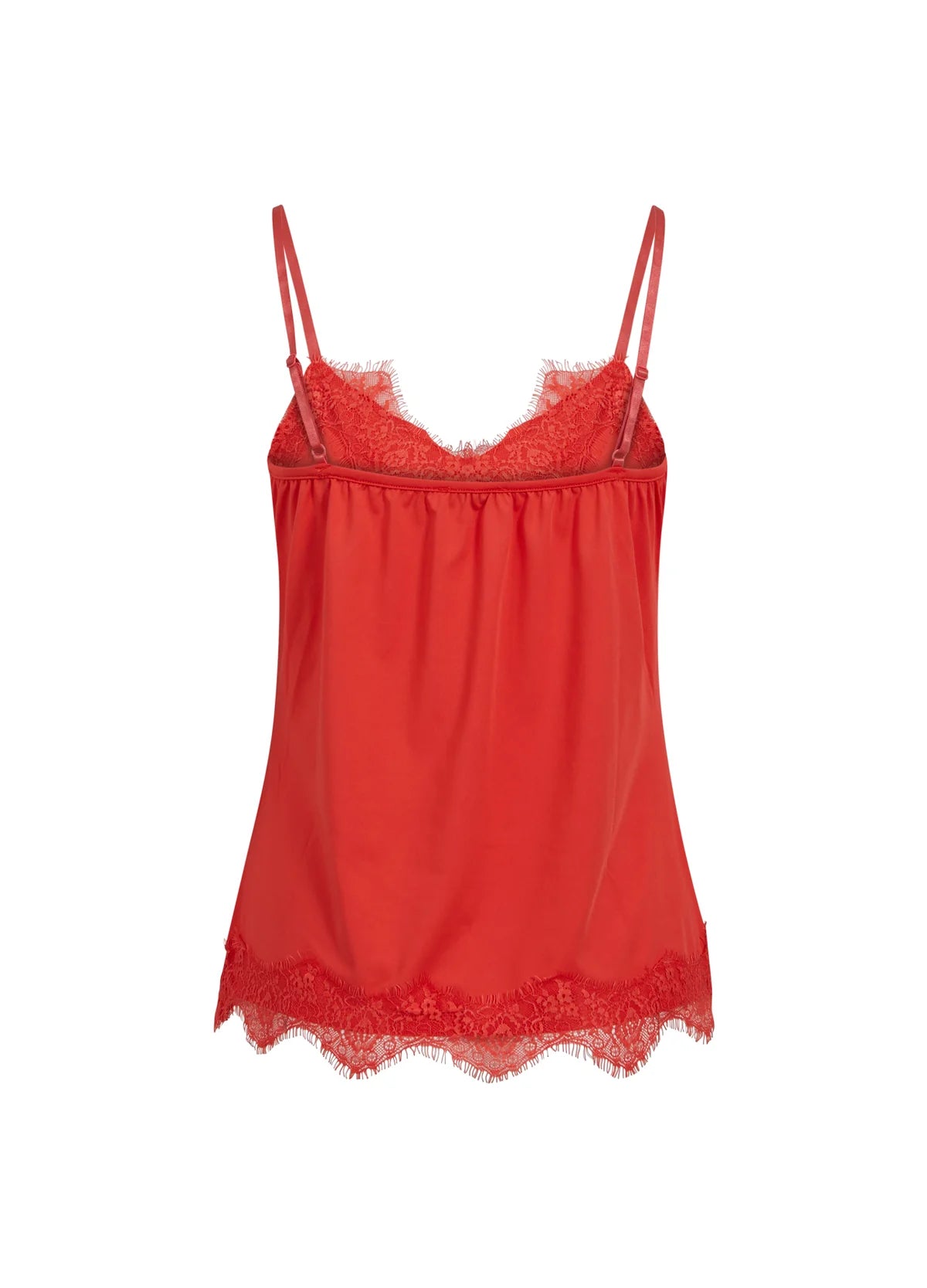 A sleek and elegant camisole with a soft V-neck and adjustable spaghetti straps. The top features lace details and has a relaxed fit. Can be worn under a sweater or a jacket, but also just as a top.