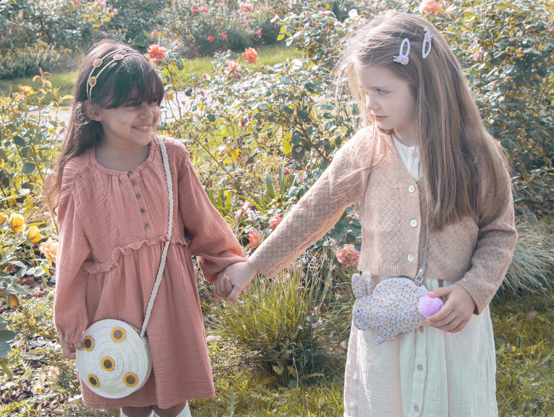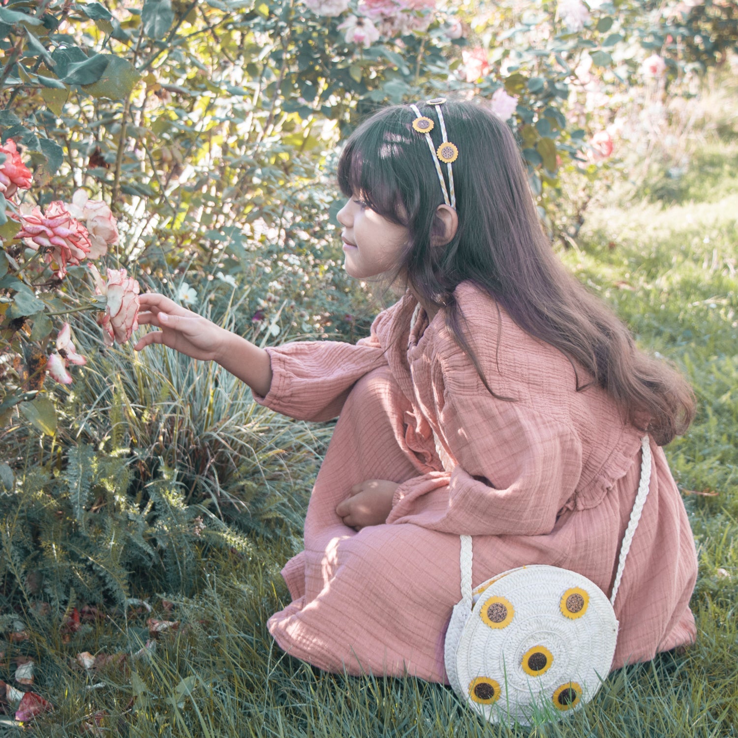 Rockahula's double headband features two bands of beautiful sunflowers, perfect for those summer adventures! Wrapped in gingham ribbon, this headband is designed to provide a comfortable fit for little heads.
