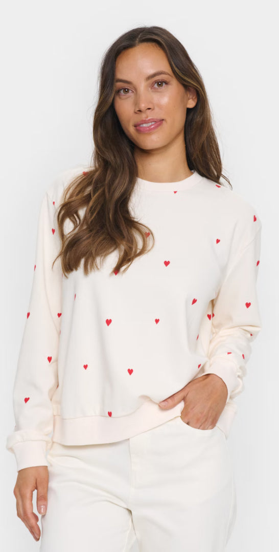 Update your wardrobe with this stylish and cozy sweatshirt that features a classic crew neck and long sleeves. The heart print adds a touch of playful charm to your look.