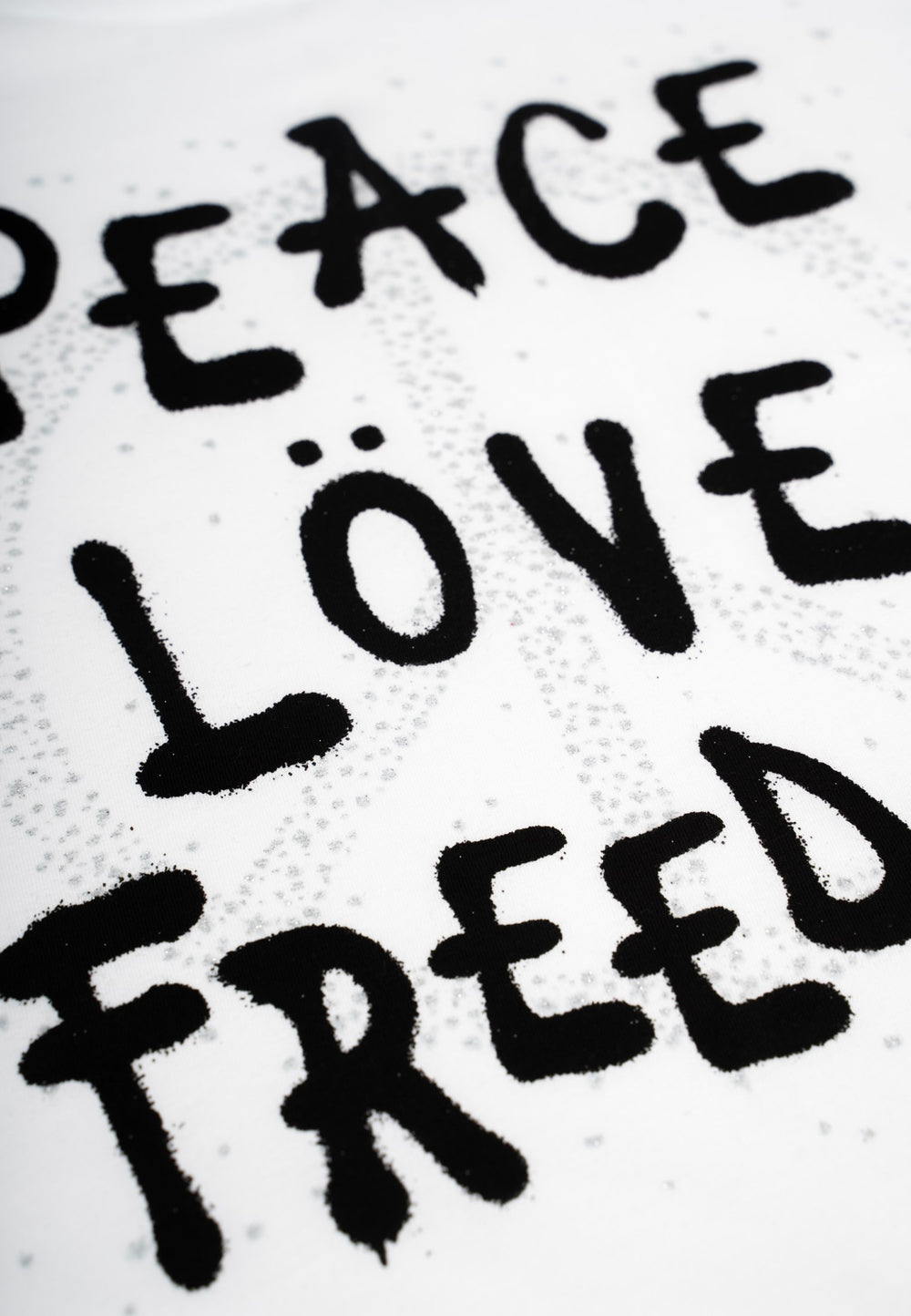 The Globe top is the ultimate boyfriend t-shirt in a white cotton jersey with Religion's Peace love graphic. This t-shirt has a relaxed fit, crew neck, short sleeves and has our praying skeleton embroidery at the hem. Wear with any jeans, leggings or skirts.