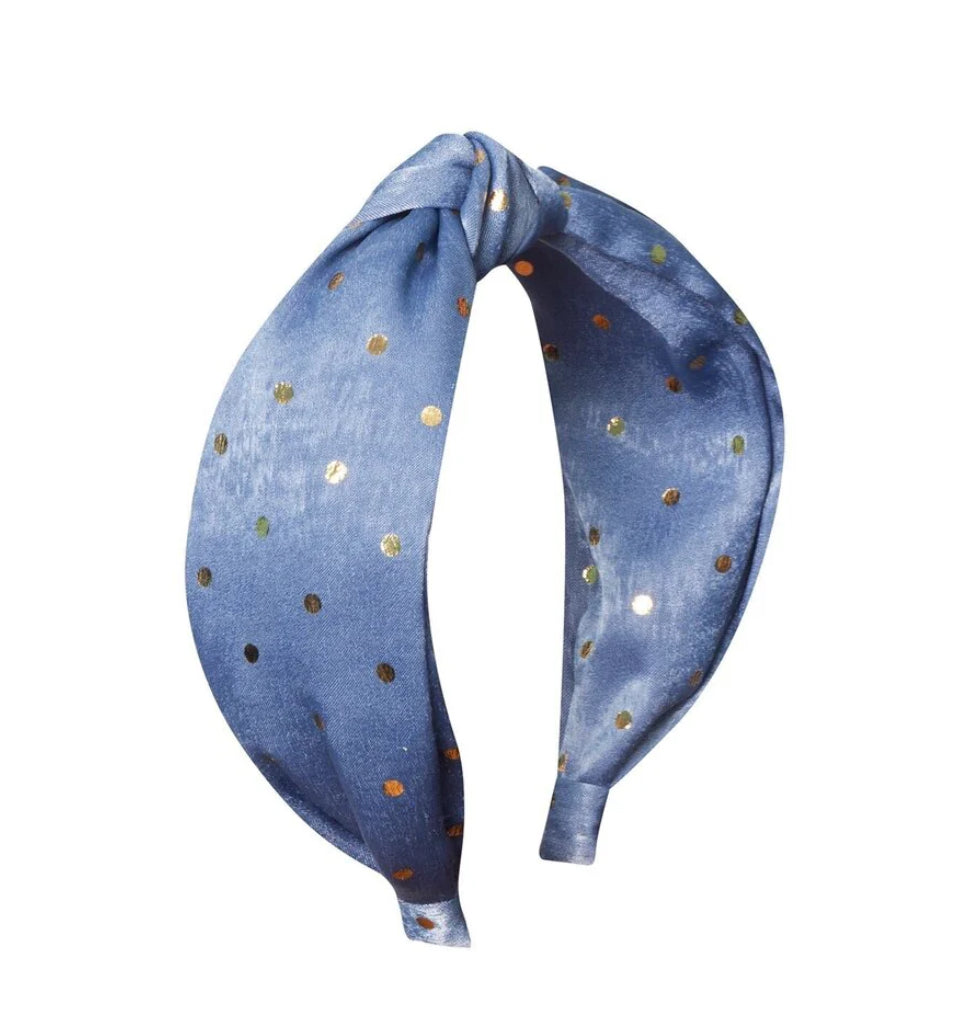 Gold Spotty Headband - Blue