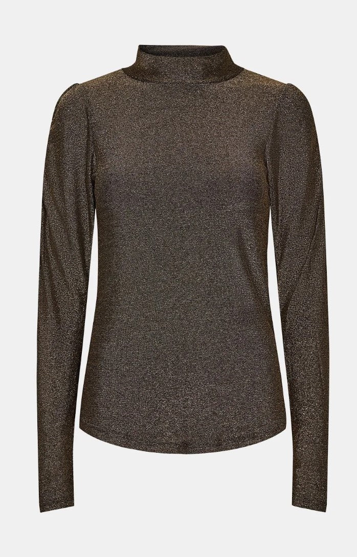 Sofie Schnoor Gold Glitter Lurex Polo Top Blouse