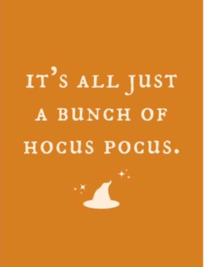 It's all just a bunch of Hocus Pocus. A humorous, halloween themed mini metal sign with jute string hanger.