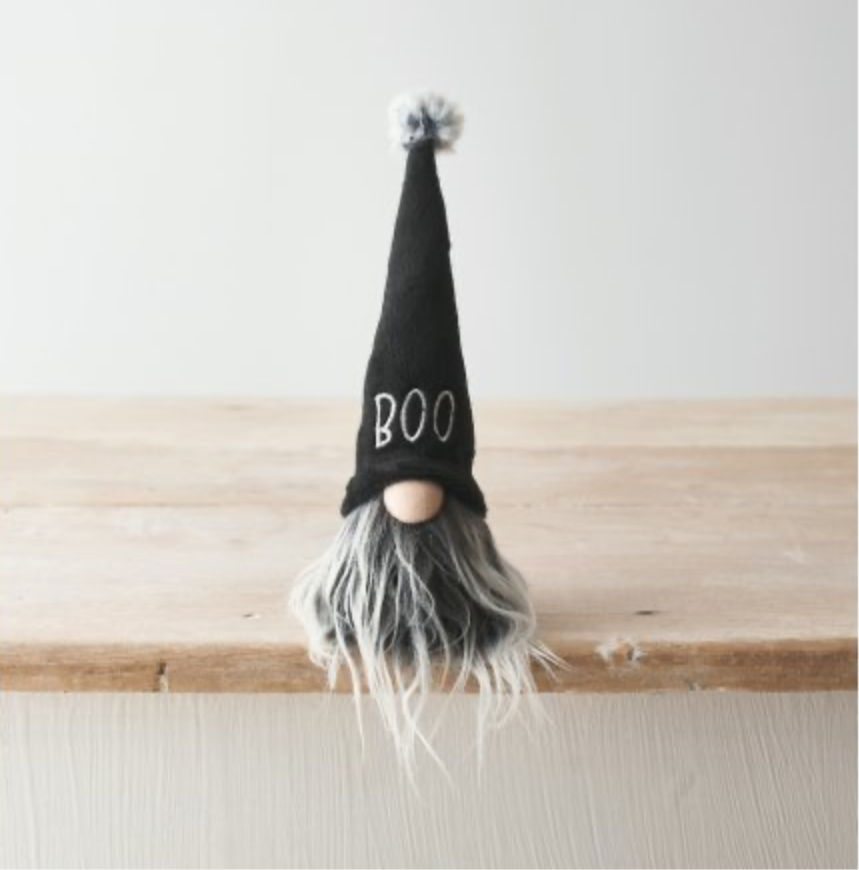 A charming small, halloween inspired gonk. Complete with a black pointy hat with 'boo' embossed wording and a long fuzzy beard.