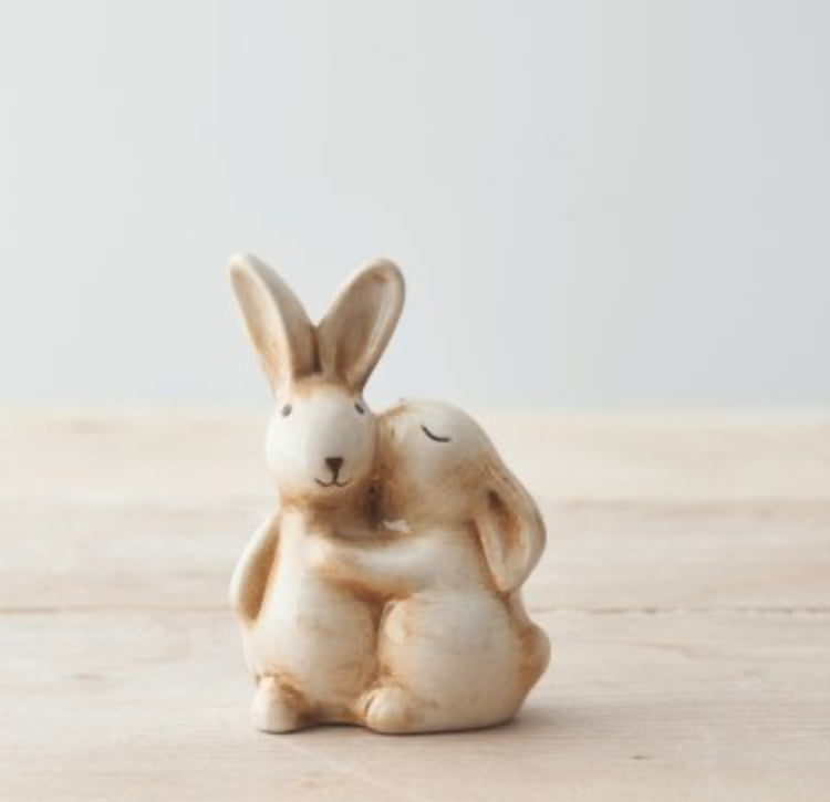 Add some country charm to your home decor with this sweet Ceramic Ornament with Two Rabbit's Hugging.