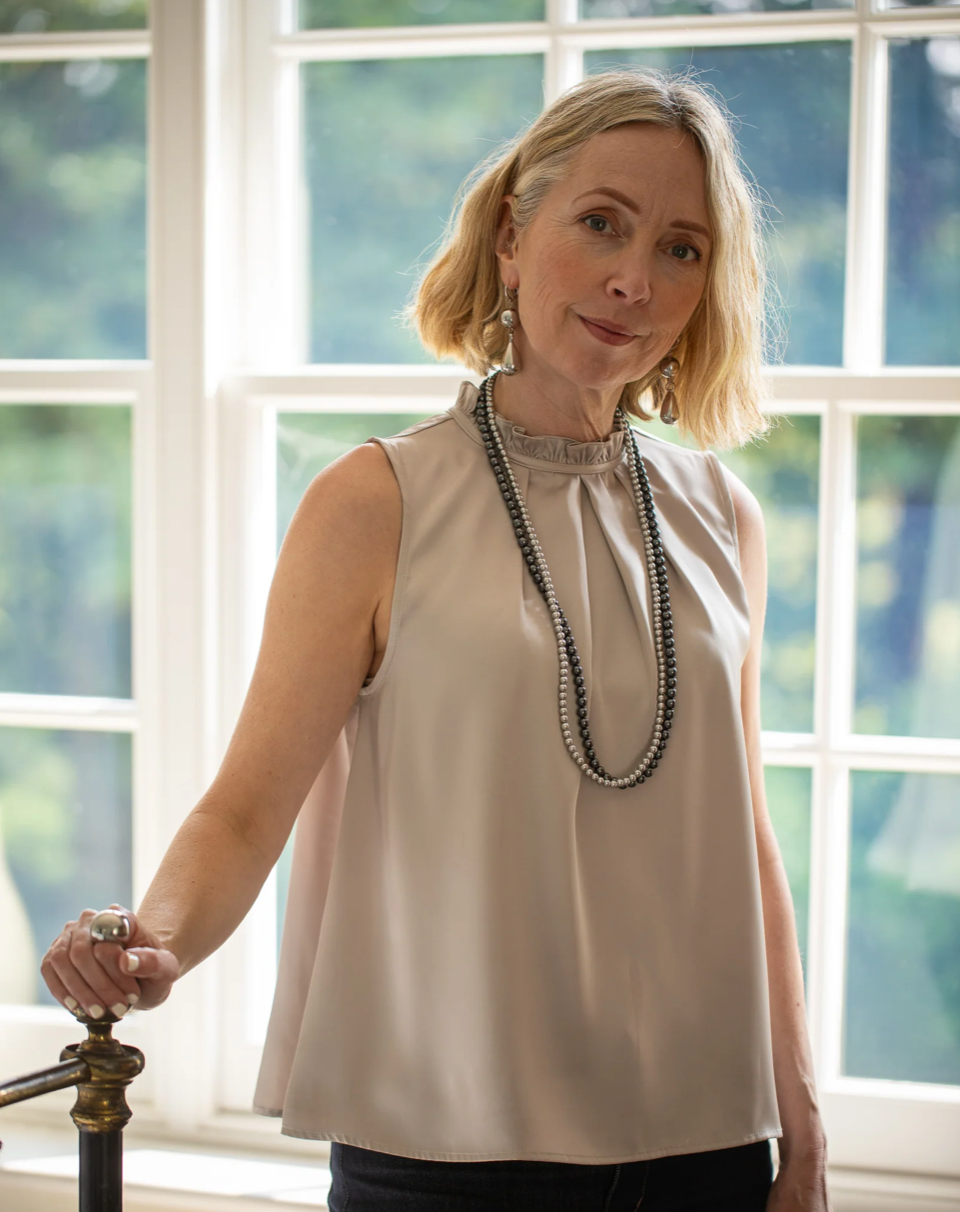 Imogen is a sleeveless, gathered neckline top, in drapey satin. Designed with a key hole button back and pinch pleat fullness in front. This top is a simple, yet beautifully designed addition to add to your winter wardrobe. Perfect for party wear, slip under a jacket for day to night styling.