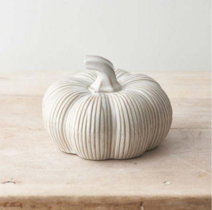 A classic and timeless ceramic pumpkin ornament in a neutral colour to compliment many interior settings.