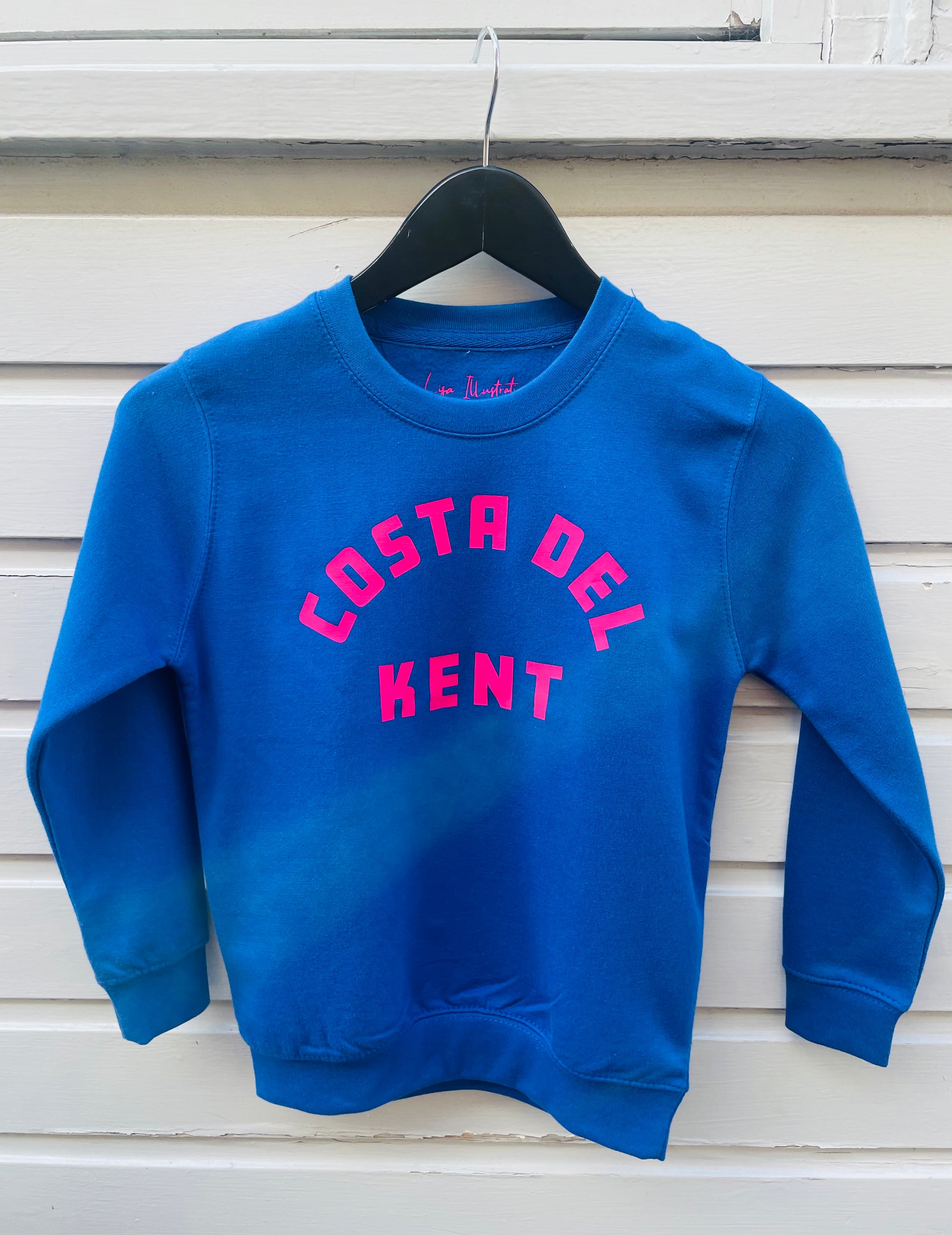Blue Sweatshirt with Costa del Kent written on the front in pink