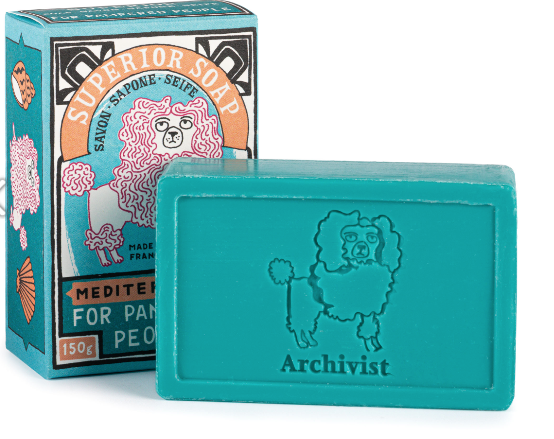 Archivist has teamed up with an incredibly talented and nose-trusted soap maker in the dreamy land of Provence, France to bring you Savon d’Archivist (catchy right?!). From lovely lemon, warming orange and cinnamon and the escapism of Provence in a intensely scented soap we are launching our very own range of soap, carefully selected and packaged with two distinctive designs – choose from our beautifully letterpressed elephant design and our wonderfully bonkers obsession with poodles!