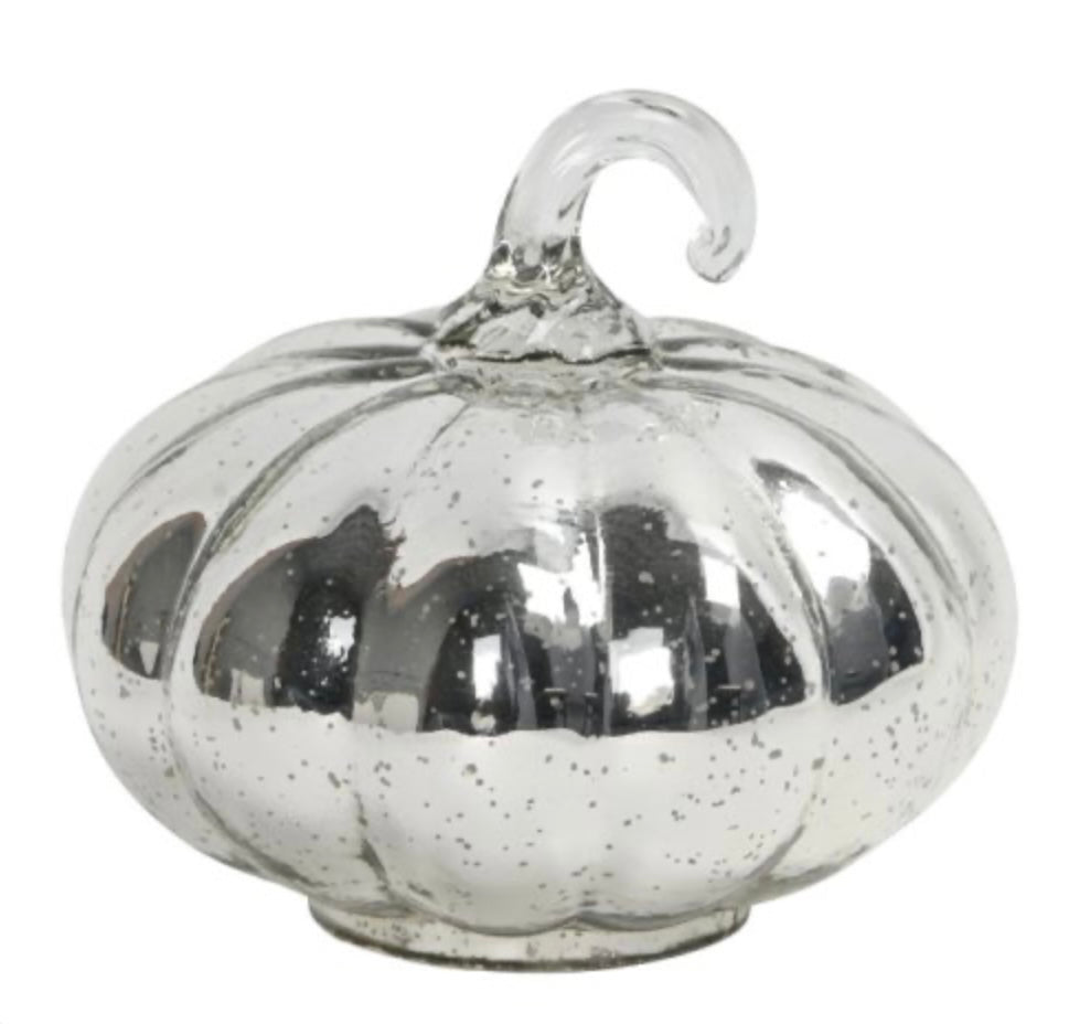 A cute silver mirrored pumpkin ornament, a stylish way to add a little Autumn charm to your home. Pop on the mantelpiece or great as table decoration.