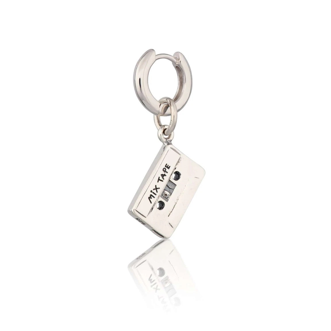 Embrace the latest single earring trend with our sterling silver mix tape huggie hoop earring. Reliving the pre-digital era the 3D cassette tape charm hangs beautifully from our classic huggie hoop. Sold as a single earring and available in silver or gold plated, it looks great worn alone or mix and matched to fashion many earrings together - perfect for those who love to mix it up!