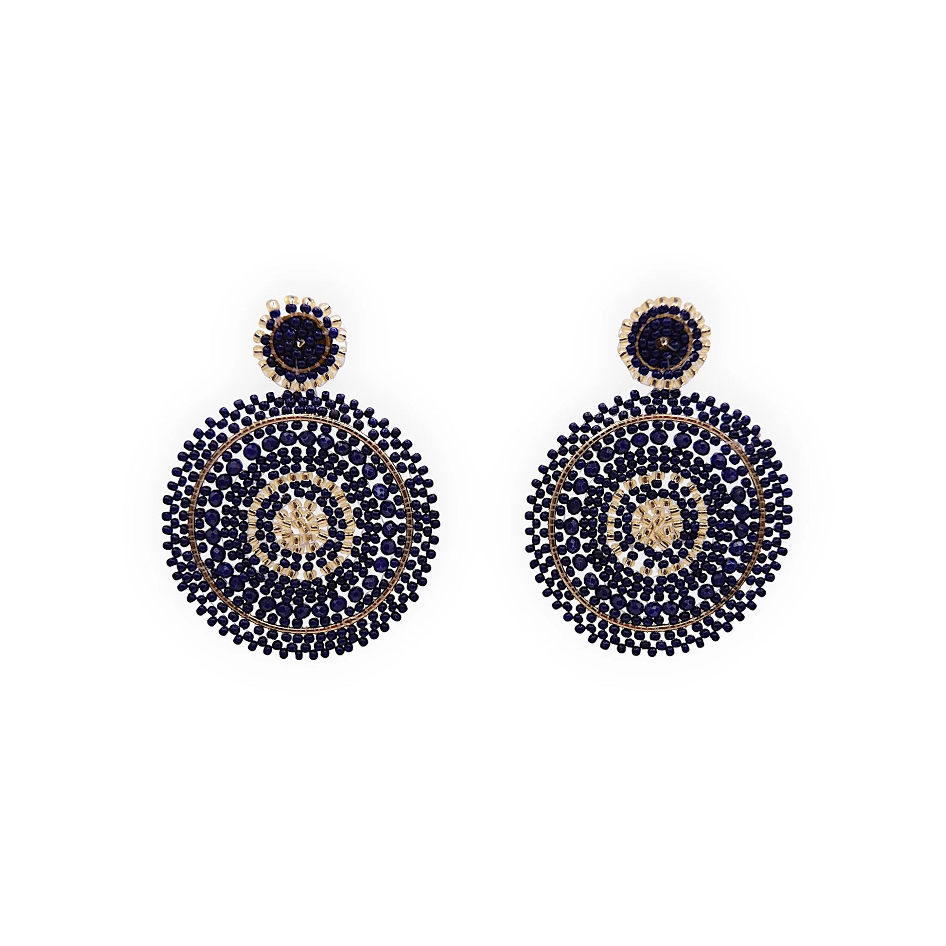 Navy Mix Beaded Circle Drop Earrings