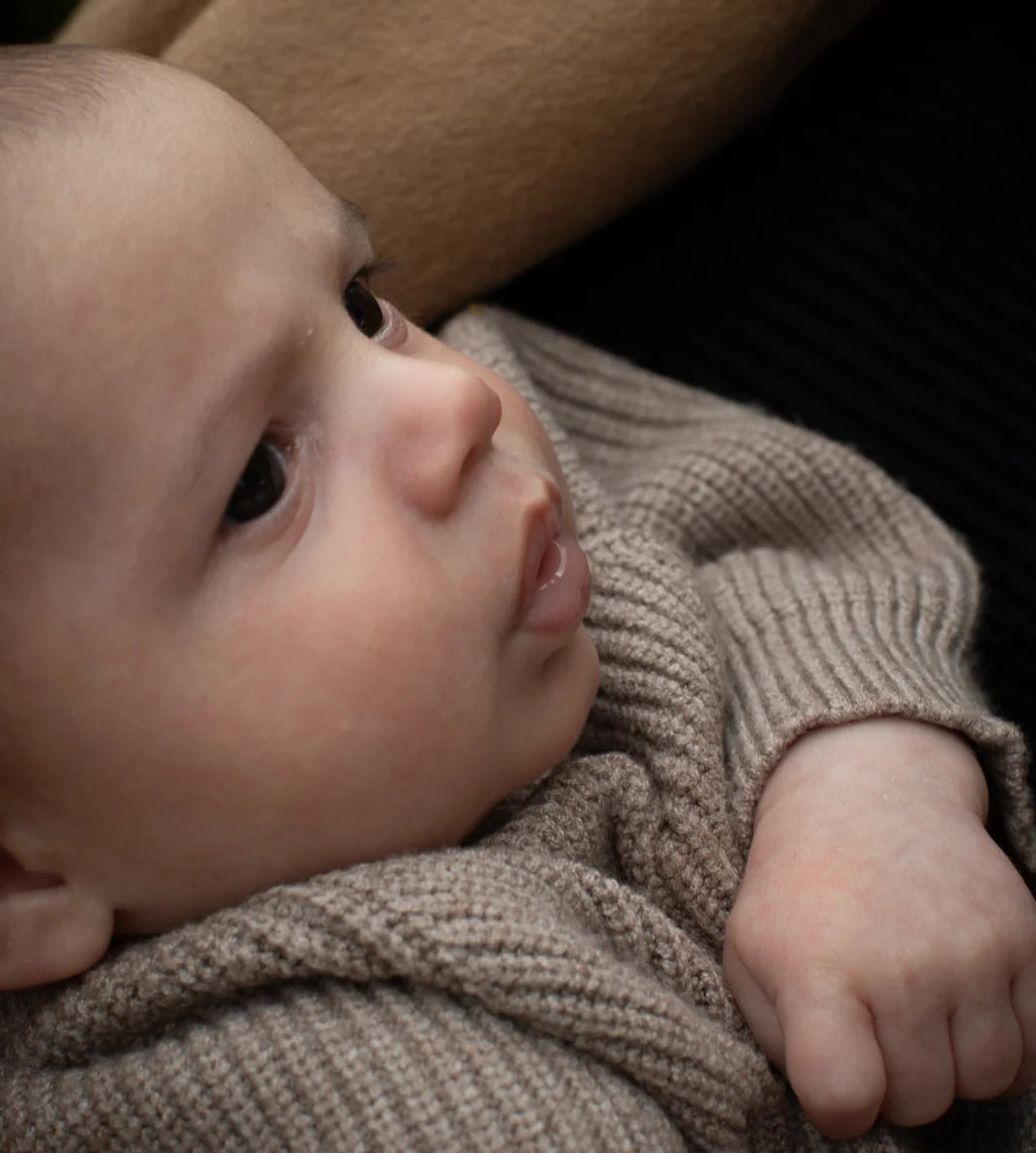 Piglet is a two piece newborn - 6 month set. The trousers are soft and comfortable with an elasticated waistband legging and a soft rib cuff to the hem. The ribbed jumper is a raglan sleeve crew neck jumper with front button fastening to the neck.