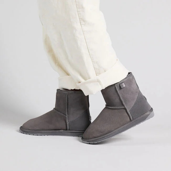 Emu Stinger Mini is a snug, water resistant, ankle-height boot made in Australia using natural, cushioning, cosy double-face sheepskin. A dual density sole unit with extra cushion EVA delivers a decadent feel-good-factor.