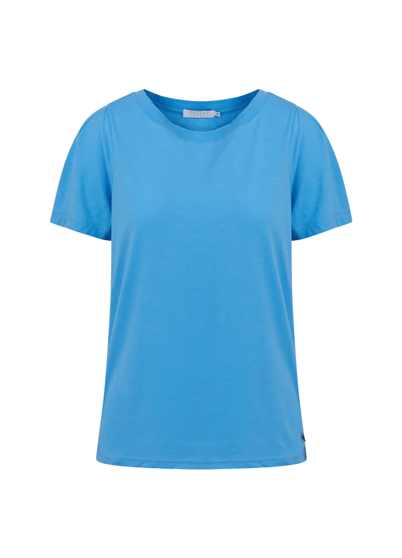 Nice t-shirt in cotton and polyester with pleats on the shoulder, which gives it a nice cut. Available in several different colours.