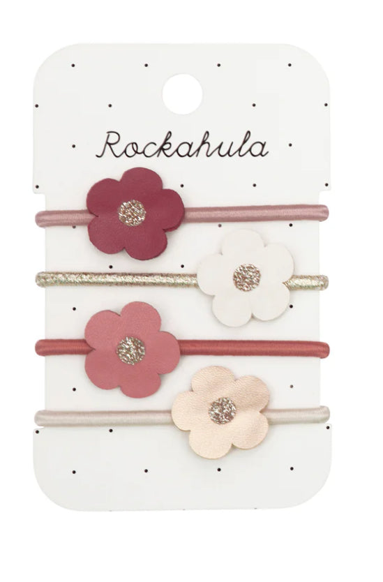 This four pack of dusky daisy ponies are perfect for country adventures! Featuring four sweet PU daisies sat upon different coloured elastics! Wear them one at a time, or all at once!