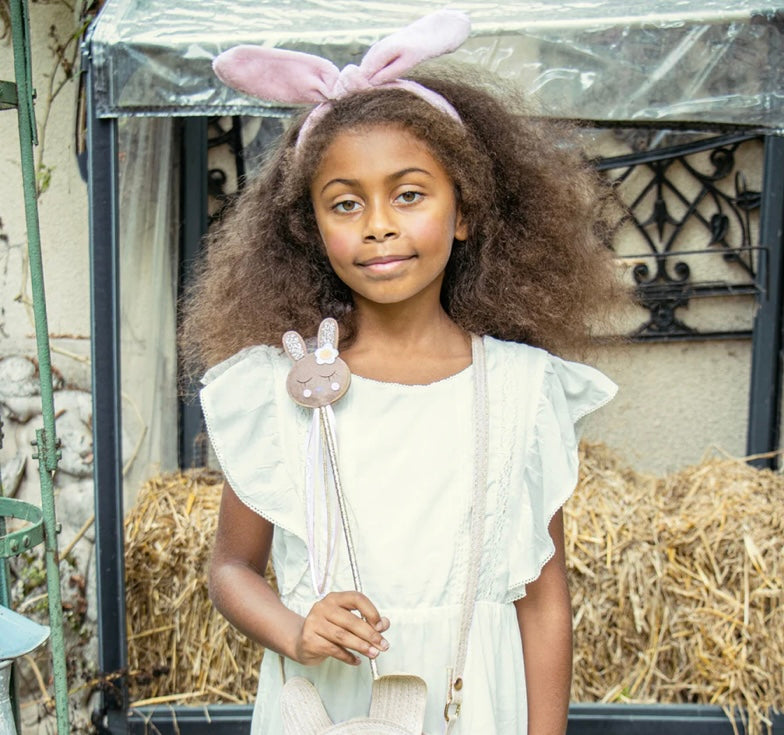 Create a little magic with this adorable Bunny Wand! With a fabric wrapped centre stem, and soft coloured grosgrain streamers - this wand is perfect for summer adventures, imaginative play, or a fun addition to the dressing up box.