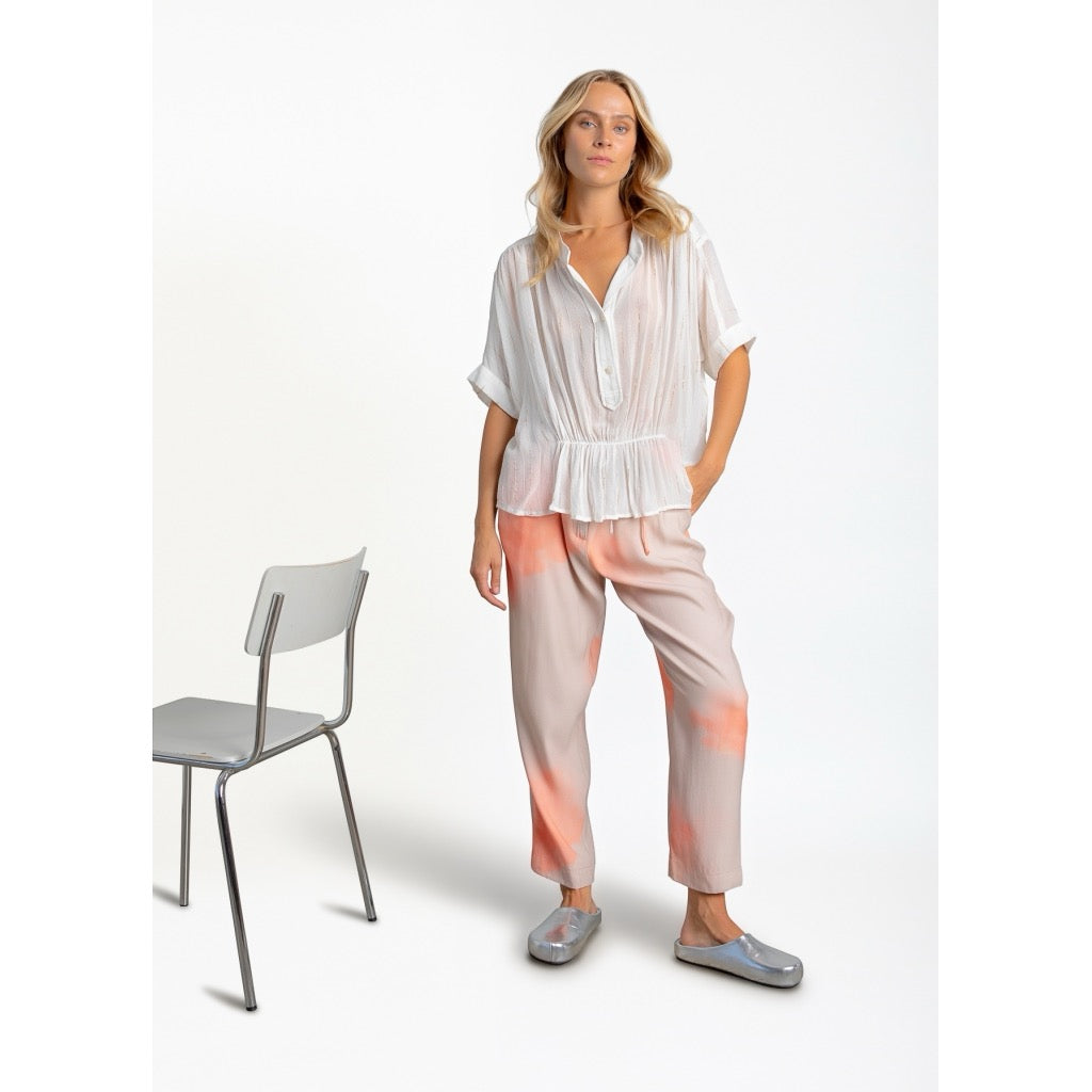 White Sheer Blouse with Gold Flecks